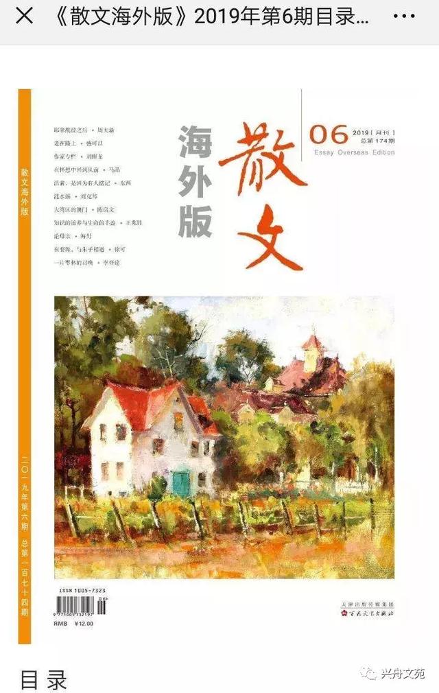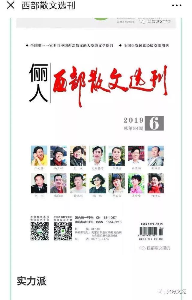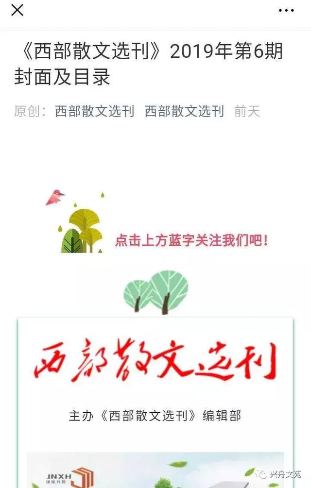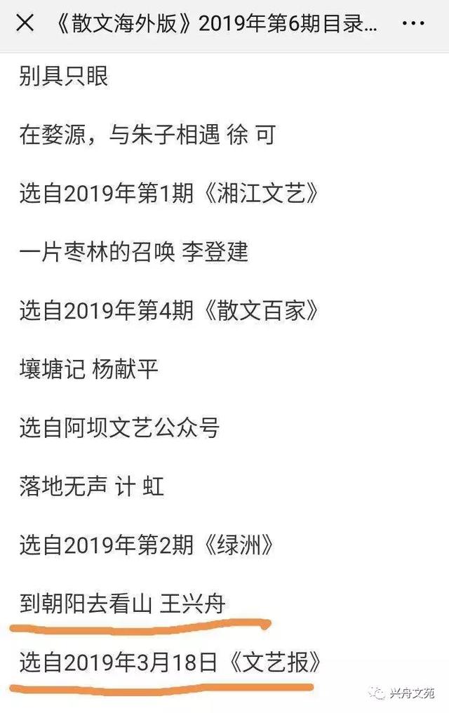 著名作家王興舟先生創(chuàng)作的兩篇散文被全國性的散文選刊選載