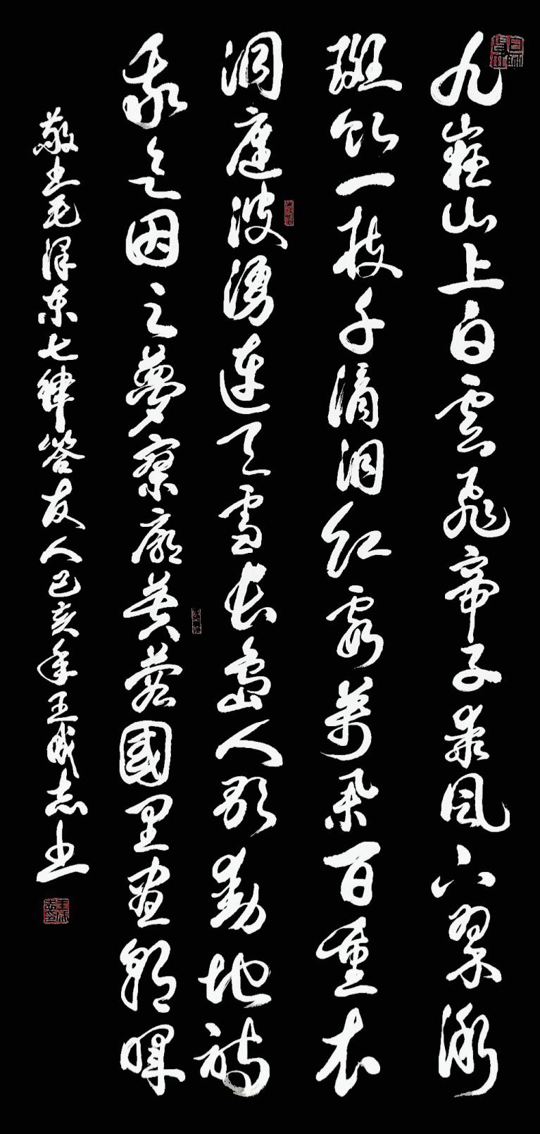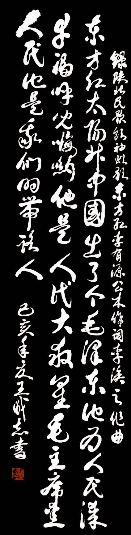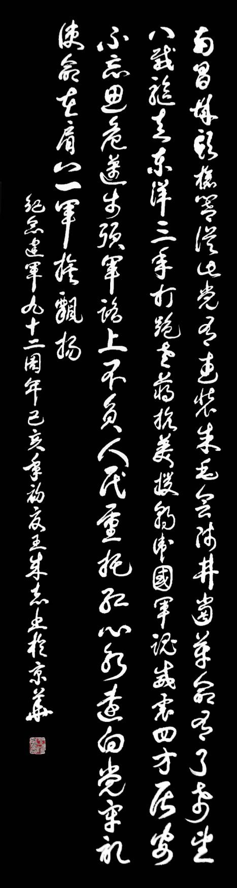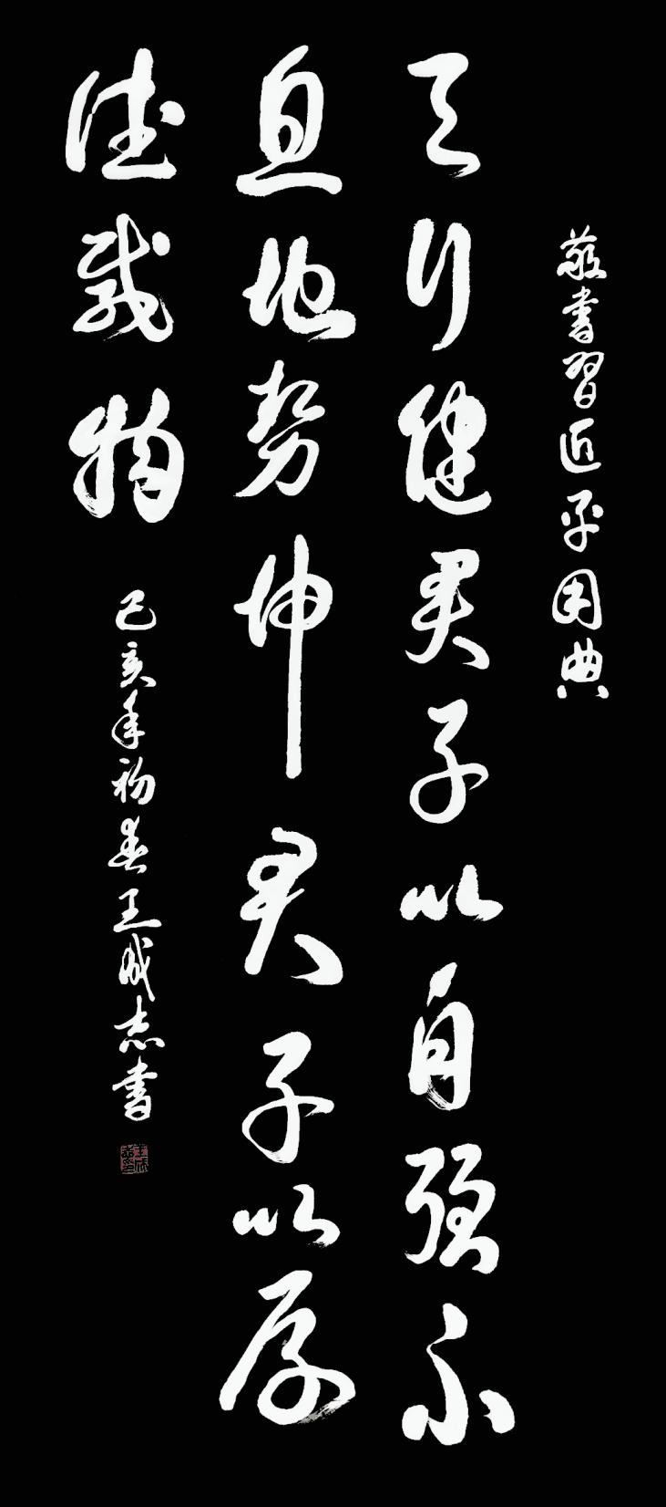 他祖上幾代都是教師,擅長(zhǎng)毛筆寫字,耳濡目染中,王將軍從小就養(yǎng)成了用毛筆寫字的習(xí)慣。參軍入伍,在緊張的訓(xùn)練和工作之余,筆耕不輟,堅(jiān)持臨摹學(xué)習(xí)書法。其實(shí),試看歷朝歷代的著名書法家,哪一個(gè)不是“冬練三九,夏練三伏”?哪一個(gè)不是在工作之外,對(duì)所鐘情的事情投入巨大的心血?寶劍鋒從磨礪出,梅花香自苦寒來(lái)。感覺(jué)這句話特別適合王將軍這樣的軍人書法家。頭一句,是軍人以在戰(zhàn)場(chǎng)拼殺報(bào)效祖國(guó)為榮,而練就非凡的本領(lǐng),是靠平時(shí)的一點(diǎn)一滴的積累,是靠平時(shí)的苦練和甘灑熱血寫春秋的意志堅(jiān)持下來(lái)的,只有這樣的寶劍在殺敵報(bào)國(guó)時(shí)才能鋒利無(wú)比,才能建功立業(yè)。而梅花是文人雅士的嗜愛(ài),能在最寒冷的季節(jié)吐蕊放香,不是每個(gè)花朵都可以做到的,梅花的品性恰好詮釋了文人墨客對(duì)于美的的追求,也應(yīng)和了我軍對(duì)于軍人品質(zhì)的要求,戰(zhàn)士們?cè)趪?yán)格軍事訓(xùn)練之余,放棄安逸,去追逐軍人的“風(fēng)花雪月”,這樣的境界是優(yōu)秀軍事人才必須具備的寶貴品質(zhì)。而王成志將軍正是具備了這種品質(zhì),才在軍事生涯上揮就了壯麗篇章。他傳承了太行不屈不撓的奮斗精神,他弘揚(yáng)了共產(chǎn)黨光輝燦爛的紅色文化,他繼承了博大精深的中華書法。
