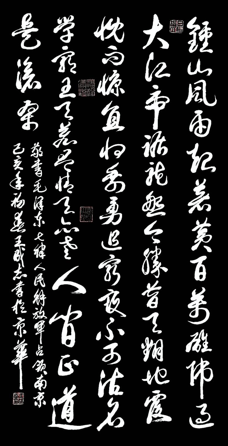就是在這樣的背景下,在2015年建軍節(jié)來(lái)臨之際,光明日?qǐng)?bào)、法制日?qǐng)?bào)、解放軍報(bào)、中國(guó)婦女報(bào)等中央新聞單位先后在報(bào)紙上刊登了王成志將軍的書法作品,特別是在2015年8月9日出版的人民日?qǐng)?bào)12版大地副刊上,刊登了王成志將軍的書法作品“風(fēng)花雪月”,讓大家在學(xué)習(xí)“文藝座談會(huì)精神”之時(shí),從書法的角度來(lái)審視軍旅文藝創(chuàng)作。一時(shí),全軍上下為之振奮,讓人一睹將軍書法的風(fēng)采。觀王成志將軍書法,格調(diào)清新,筆法靈動(dòng),遒勁有力,力道入木三分,結(jié)字突顯軍人之英氣,意到筆到,絕不拖泥帶水,茁茁兮若挺拔之青松,磊磊兮若山頂之長(zhǎng)城,觀賞中讓人精神抖擻,士氣高漲。在創(chuàng)作中他注重把飽含軍旅氣息的詩(shī)詞警句作為創(chuàng)作對(duì)象,猶喜撰毛主席詩(shī)詞,創(chuàng)作了眾多觀之大氣凜然的書法作品,給軍旅書法創(chuàng)作增添了獨(dú)有的文化氣息。這些藝術(shù)成就和他的職業(yè)生涯是緊密相關(guān)的,他政治思想堅(jiān)定,黨性原則強(qiáng),理論水平高,2017年撰寫的《擔(dān)當(dāng)歷史重任,不負(fù)厚望重托......談黨的高級(jí)領(lǐng)導(dǎo)干部表率作用》曾獲得全軍政治理論研究?jī)?yōu)秀成果論文一等獎(jiǎng)。