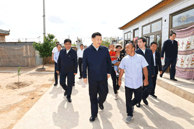 ▲6月8日下午,習(xí)近平在吳忠市紅寺堡區(qū)紅寺堡鎮(zhèn)弘德村察看回族村民劉克瑞家院落。
