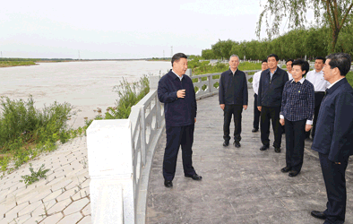 ▲6月8日下午,習(xí)近平在黃河吳忠濱河大道古城灣砌護段,察看黃河生態(tài)治理保護狀況。