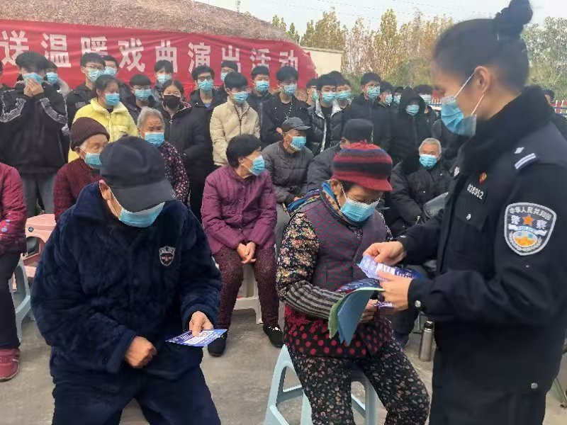 活動中,民警們向在場老人發(fā)放了宣傳頁,開展了消防安全及防詐騙知識宣傳, 推廣了手機“金鐘罩”小程序。張如國副主任致辭并演唱了一首《中國人民警察警歌》,活躍了現(xiàn)場氣氛。隨后,豫劇團志愿者們登臺演出,先后表演了《桃花庵》和《孟母三遷》等傳統(tǒng)經(jīng)典曲目,表演者們專業(yè)的扮相、優(yōu)美的唱腔,贏得了現(xiàn)場老年觀眾們的陣陣掌聲和喝彩。