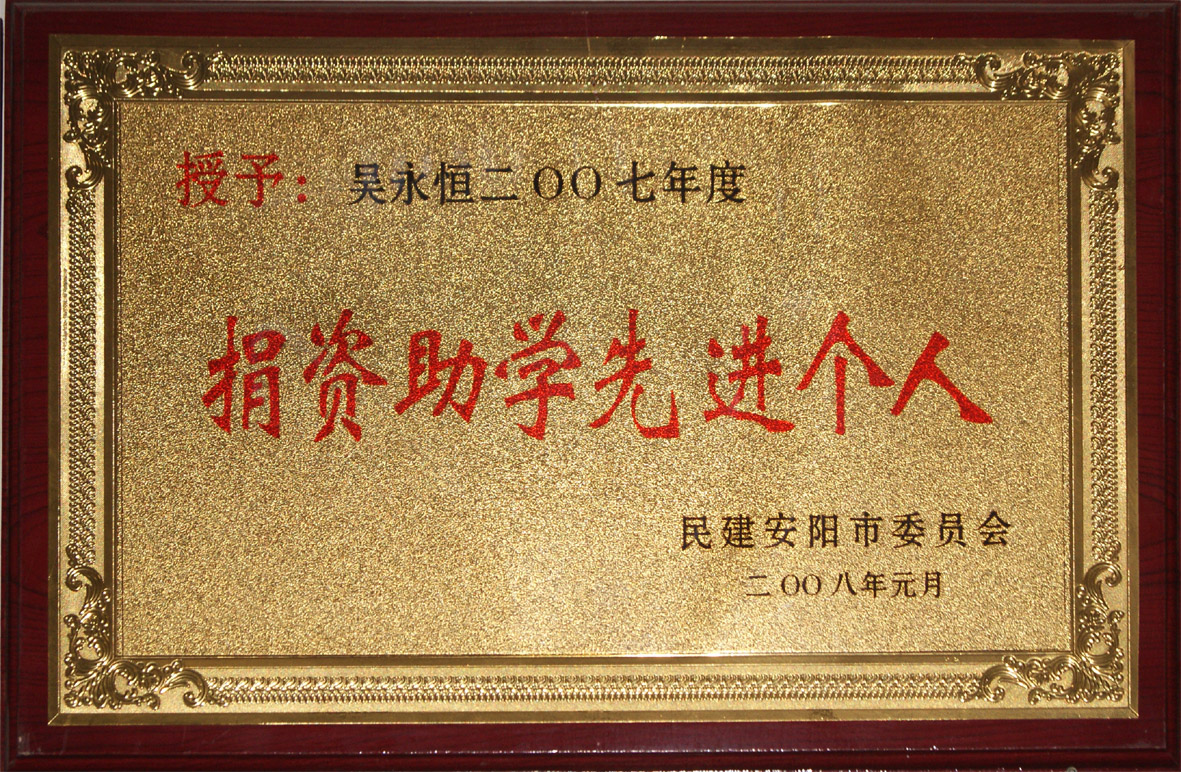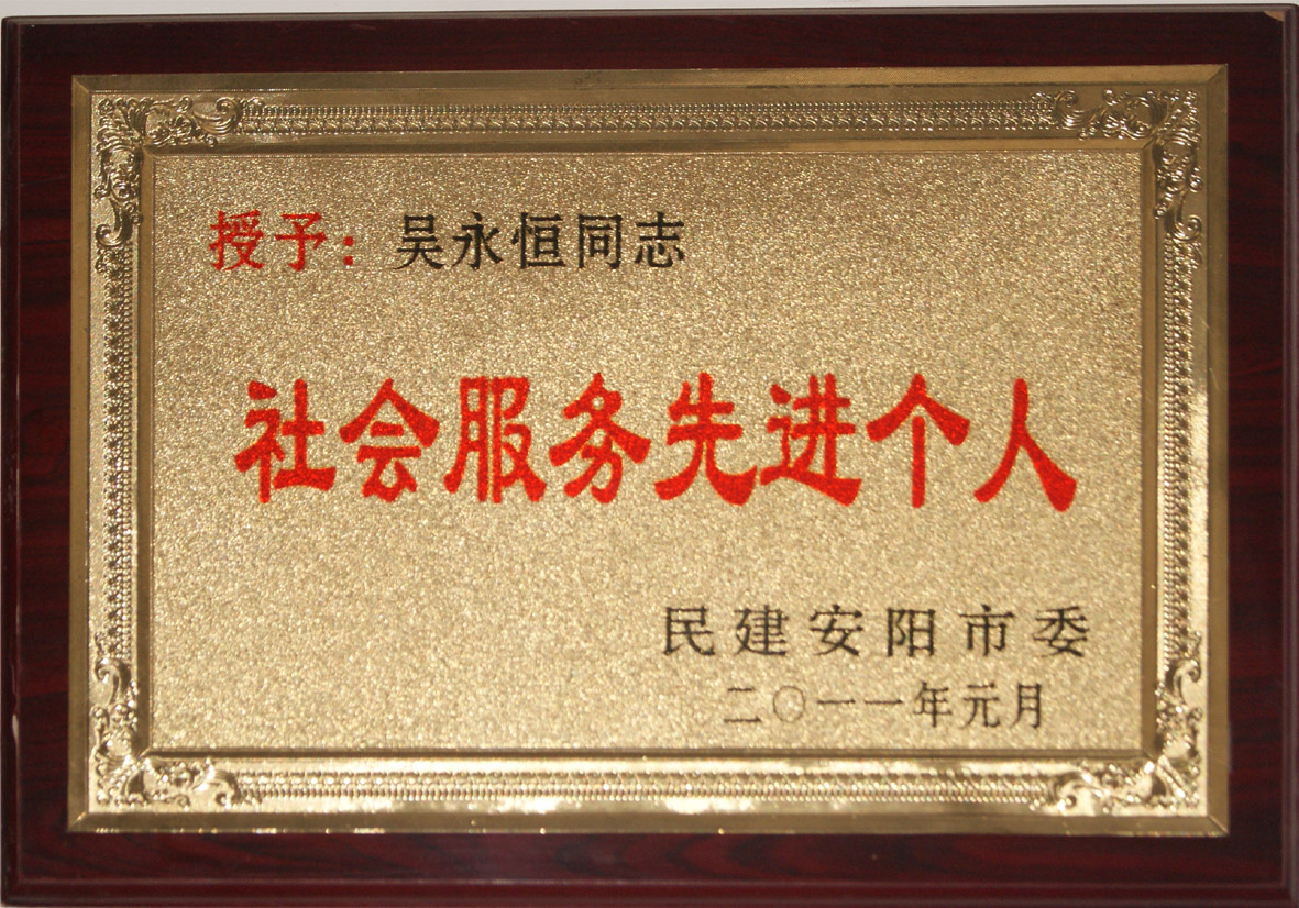 ??? 2003年和2013年,吳永恒兩次當(dāng)選為安陽(yáng)市政協(xié)委員。為安陽(yáng)市的經(jīng)濟(jì)發(fā)展和構(gòu)建和諧安陽(yáng)做出了積極的貢獻(xiàn)。