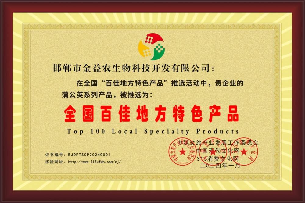 熱烈祝賀邯鄲金益農(nóng)生物科技開(kāi)發(fā)有限公司的蒲公英茶被推選為“百佳地方特色產(chǎn)品”