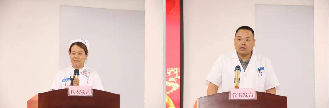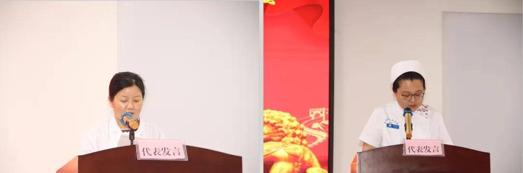 神經(jīng)內(nèi)科一病區(qū)醫(yī)生張偉艷、中醫(yī)科護士許小花作為服務標兵代表發(fā)言。