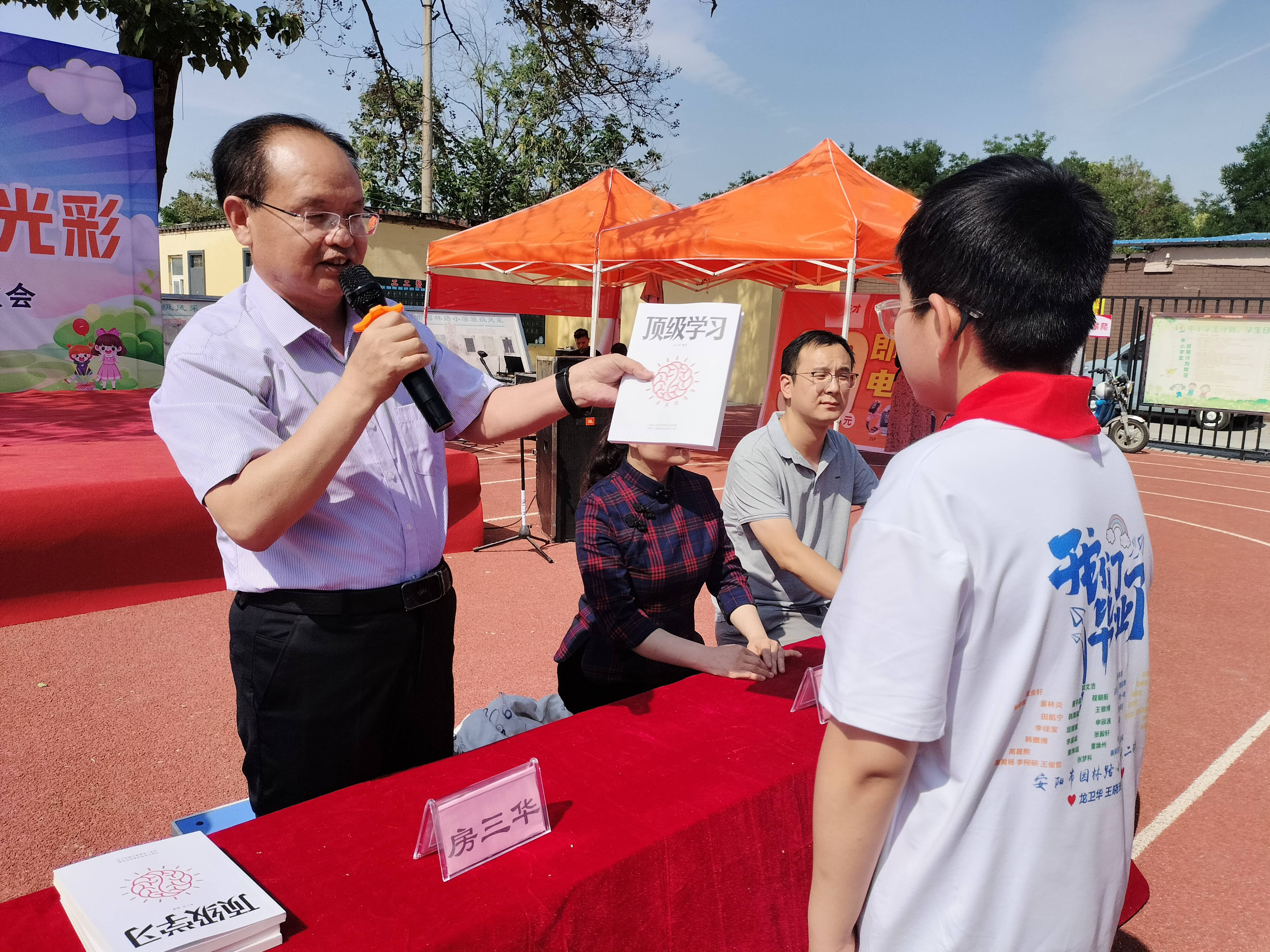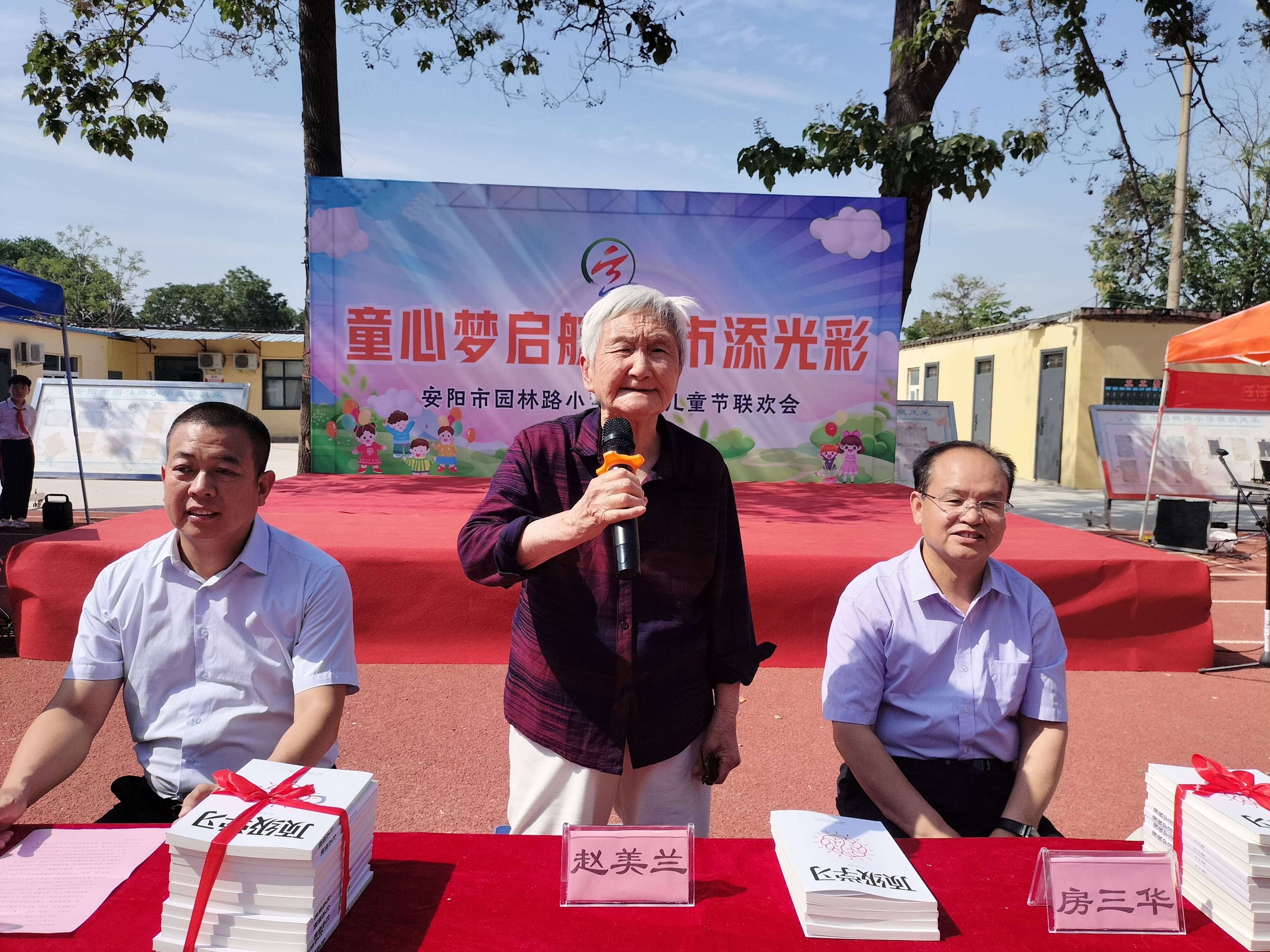 在六一兒童節(jié)來臨之際,5月30日下午,安陽市園林路小學(xué)在校園舉行了“童心夢啟航 強(qiáng)市添光彩”兒童節(jié)聯(lián)歡會,91歲高齡的離休干部趙美蘭女士向?qū)W校捐贈了《頂級學(xué)習(xí)》書籍。中國教育電視臺《光耀中華》欄目制片主任、央大視界網(wǎng)總編、民建安陽市委信息宣傳工作委員會主任林臏,原磁縣科技局局長、磁縣縣政協(xié)原常委房三華,磁縣第二實(shí)驗(yàn)中學(xué)副校長、高級教師周海芳等參加活動。