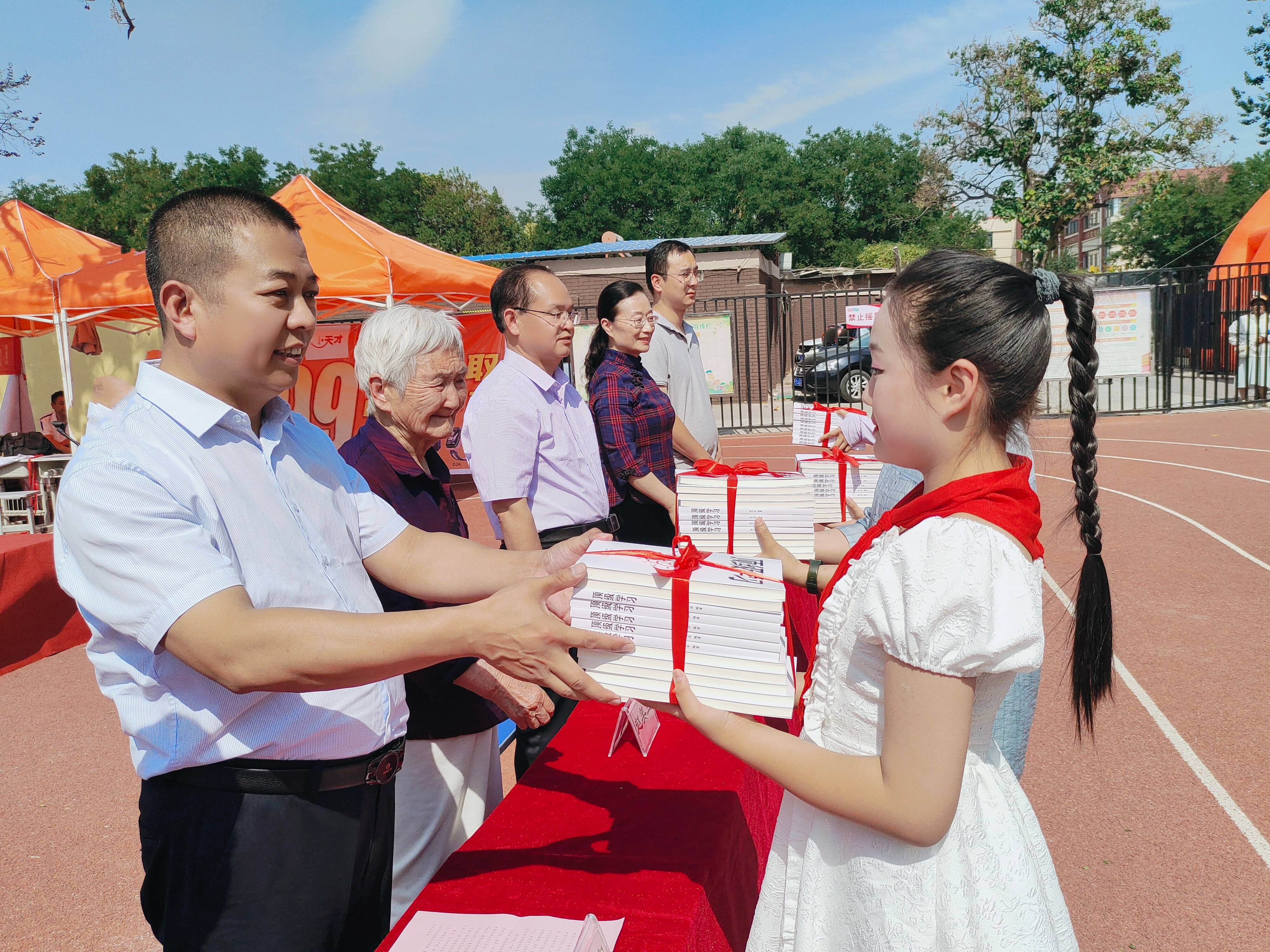會議伊始,91歲高齡的離休干部趙美蘭女士向?qū)W校教師及學(xué)生代表,捐贈了一批由房三華先生著作的一本可以掌握更好的學(xué)習(xí)方法的書籍《頂級學(xué)習(xí)》,為學(xué)生們的學(xué)習(xí)提供更多的幫助和支持,并向他們致以節(jié)日的問候。
