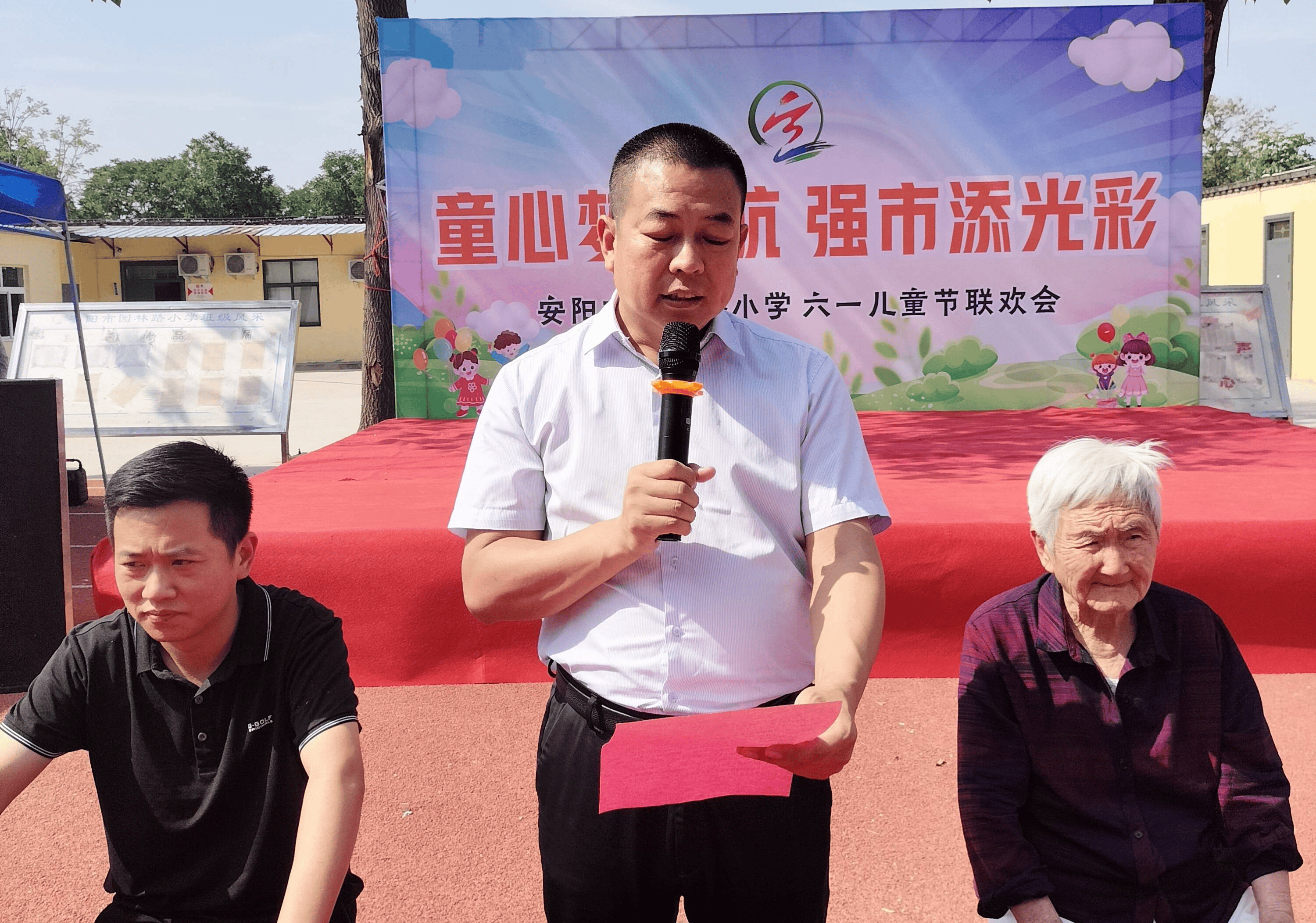園林路小學(xué)校長李政代表學(xué)校師生對趙奶奶、與會領(lǐng)導(dǎo)與嘉賓表示感謝,并對同學(xué)們提出了要求與期望,希望同學(xué)們努力學(xué)習(xí),不辜負(fù)爺爺奶奶的殷切期望,健康快樂成長。