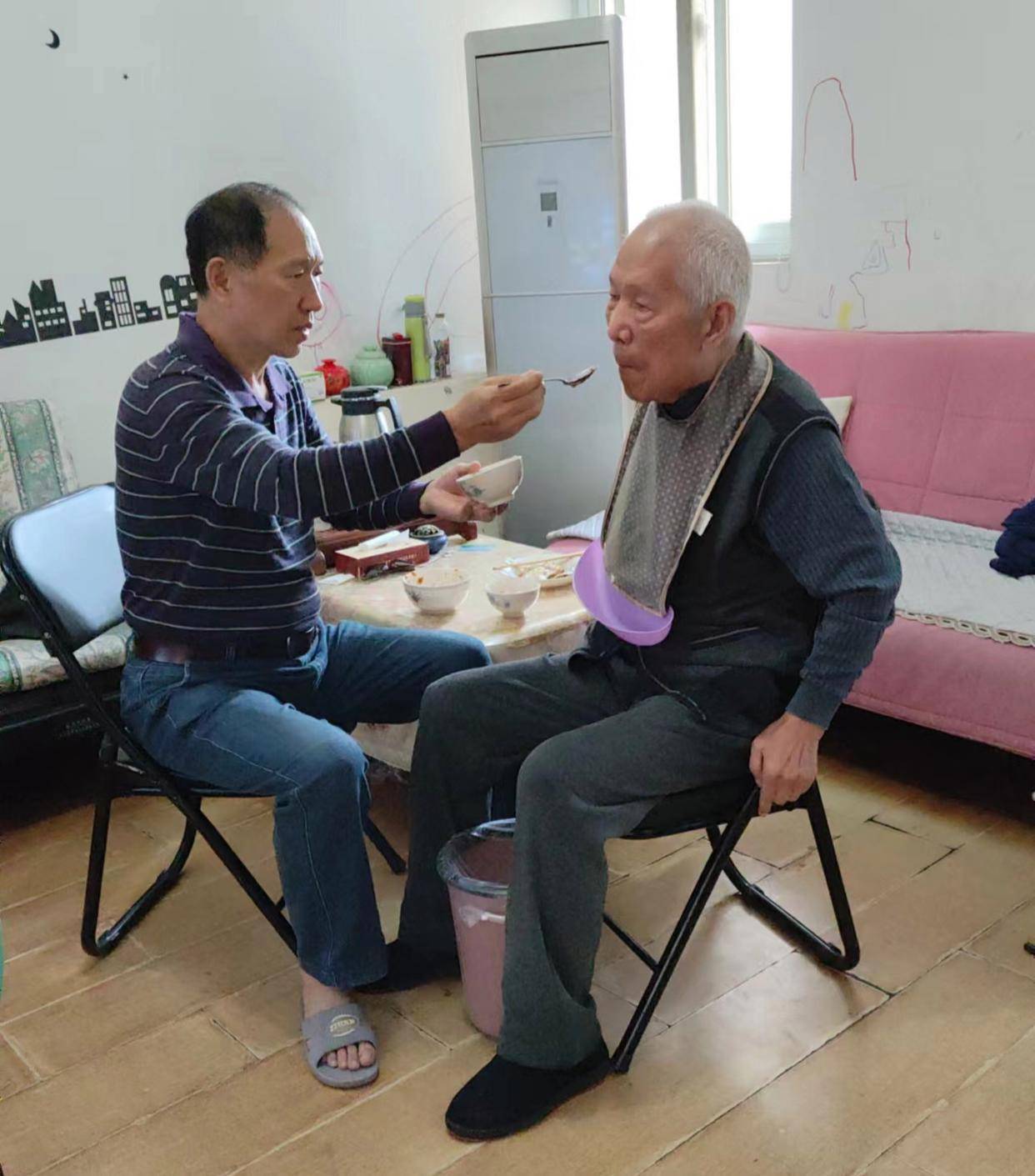 疫情期間,為了確保老父親不被感染,李建學每次外出買菜回來,都有先用酒精對自己消毒,全天戴著口罩為老人喂飯喂水,為老人接屎接尿,晚上睡覺也戴著口罩,生怕老父親有個閃失。在他的精心照料下,他和老父親平安度過了疫情。