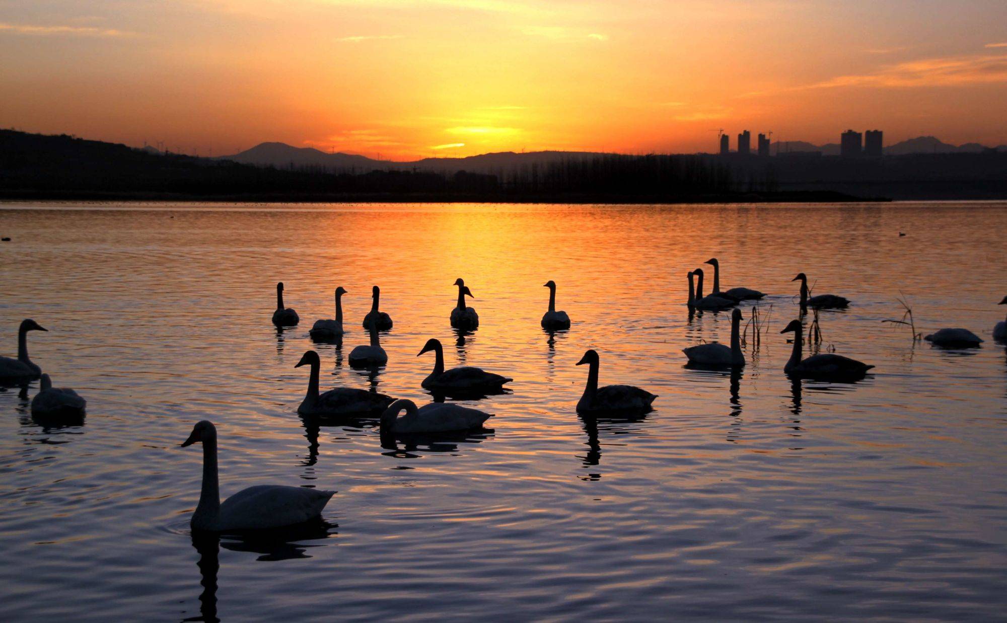 【桂枝香·毓秀湖畔觀天鵝】