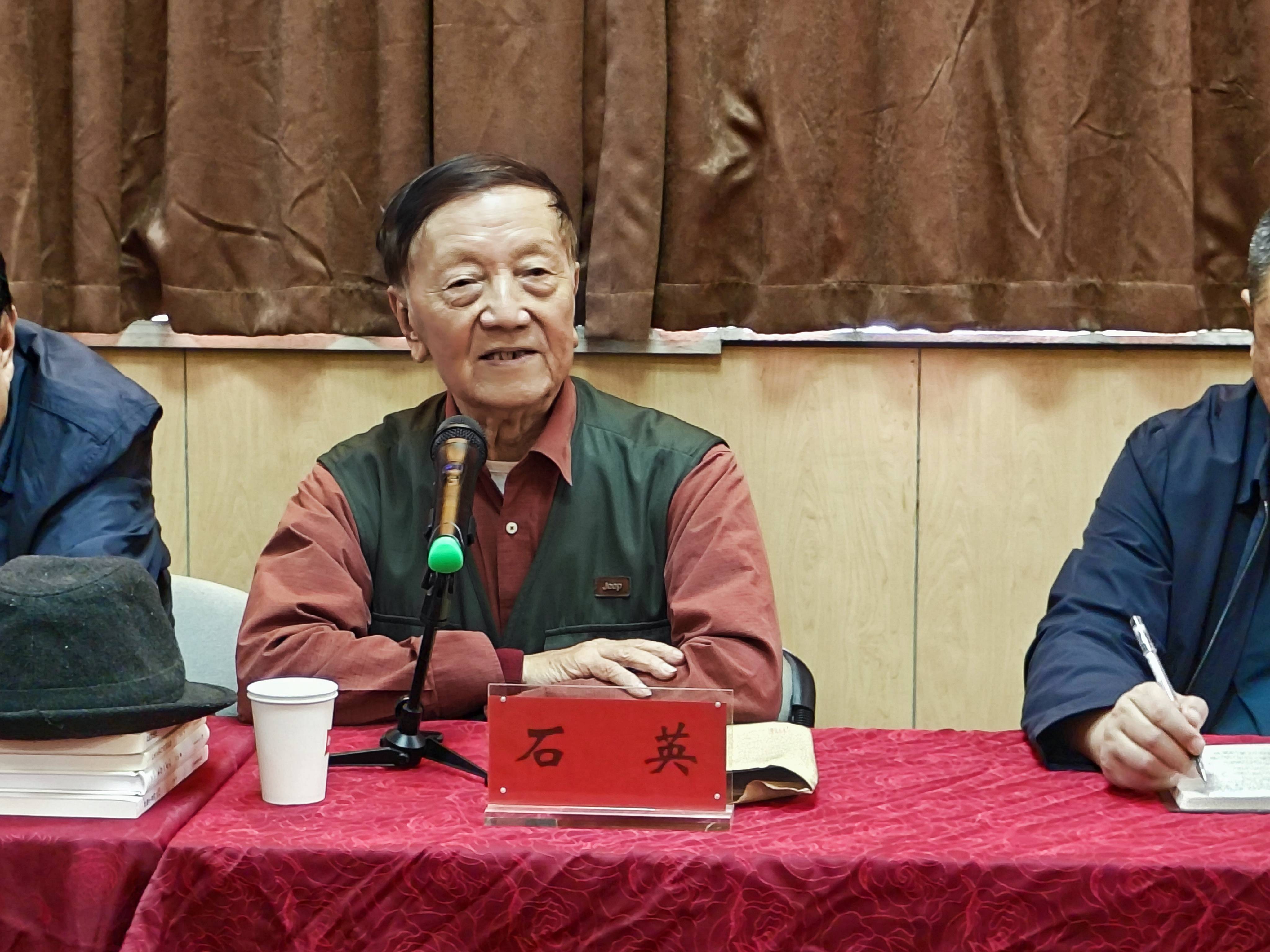 九十高齡的中國散文學(xué)會名譽會長、人民日報原高級編審、大伽作家石英先生作了中國文學(xué)的發(fā)展現(xiàn)狀暨散文創(chuàng)作的創(chuàng)新專題講座,生動地講述了自己人生閱歷及創(chuàng)作歷程和體驗,從寫生活、寫思想、寫作技巧探究諸個方面娓娓道來,諄諄誨人?;迎h(huán)節(jié)上,石老答疑解問,氛圍一度推向了高潮。一堂課講下來幾個小時,石老沒有喝一口茶、沒有起座上一趟廁所,閑談中我說,石老您這個健康的標(biāo)識,原由在自己體內(nèi)自我的調(diào)整和循環(huán)良好哦。他點點頭:是啊。收徒拜師儀式隆隆重重,石老如此謙和且激動地說道:我喜歡稱大伙謂文友,咱們今生有緣,一起領(lǐng)略探討文學(xué)的美妙。