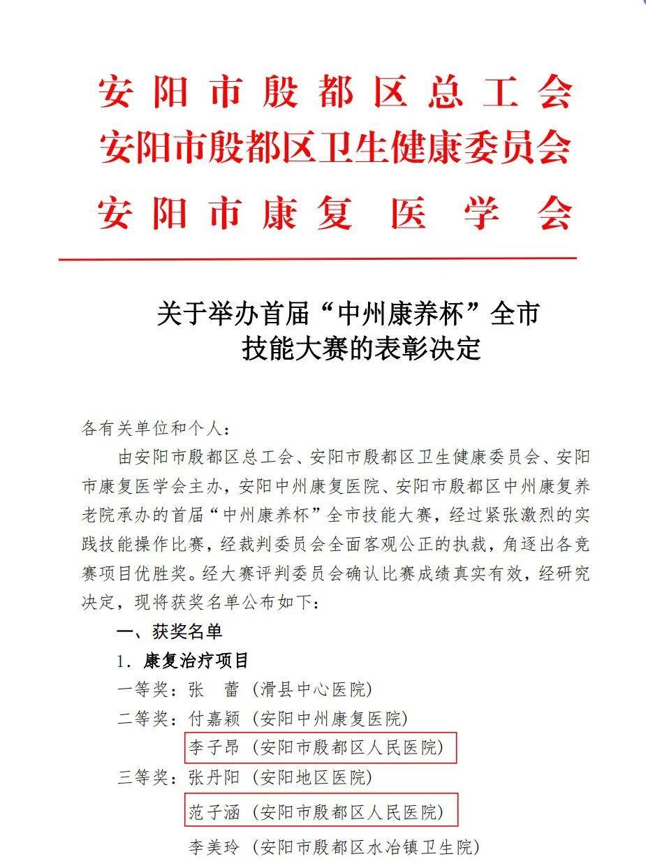 大賽設(shè)置了康復(fù)治療、康復(fù)護(hù)理、養(yǎng)老服務(wù)三個(gè)競賽項(xiàng)目,吸引全市23家醫(yī)養(yǎng)機(jī)構(gòu)的100余名從業(yè)人員參加。經(jīng)過激烈角逐,殷都區(qū)人民醫(yī)院康復(fù)科李子昂在康復(fù)治療項(xiàng)目中榮獲二等獎(jiǎng),康復(fù)科范子涵在康復(fù)治療項(xiàng)目中榮獲三等獎(jiǎng),內(nèi)科重癥李佳楠、醫(yī)養(yǎng)結(jié)合科楊倩在養(yǎng)老服務(wù)項(xiàng)目中榮獲二等獎(jiǎng)。