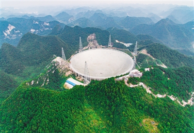 被譽(yù)為“天眼”的國家重大科技基礎(chǔ)設(shè)施500米口徑球面射電望遠(yuǎn)鏡(FAST)工程全景。