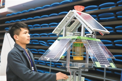 第三屆全國大學(xué)生智能農(nóng)業(yè)裝備創(chuàng)新大賽現(xiàn)場,來自湖南農(nóng)業(yè)大學(xué)參賽選手在展示農(nóng)業(yè)滅蟲無線監(jiān)控裝置。