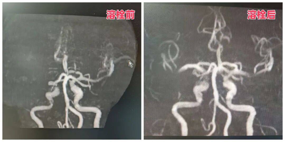 溶栓后,復(fù)查頭顱核磁,閉塞血管主干已部分再通,臨床癥狀逐漸改善,大大降低了患者的致殘。目前患者已能正常交流、進(jìn)食,生活質(zhì)量顯著提升。此次溶栓的成功,再次驗(yàn)證了科室對(duì)急性腦梗死救治“快、準(zhǔn)、穩(wěn)”的專業(yè)素養(yǎng)。