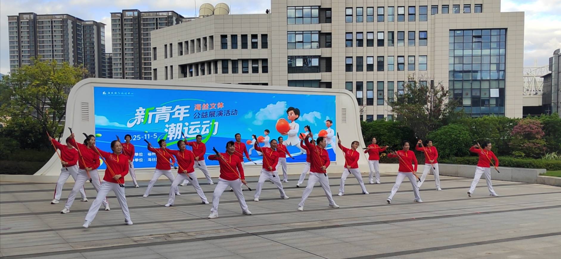 (央大視界網(wǎng) 福建訊)金秋送爽,丹桂飄香。2025年11月5日,“新青年·潮運(yùn)動”海絲文體公益展演活動在海絲國際旅游中心二樓外廣場成功舉辦。本次活動由福州市文學(xué)藝術(shù)界聯(lián)合會指導(dǎo),海絲國際旅游中心主辦,福建無極球推廣中心承辦,福州市晉安區(qū)飛飛魚志愿者服務(wù)中心協(xié)辦,以“文體+文旅+公益”深度融合的創(chuàng)新形式,為廣大市民游客呈現(xiàn)了一場兼具活力與溫度的文化盛宴,助推全民健身熱潮與“福”文化傳播。