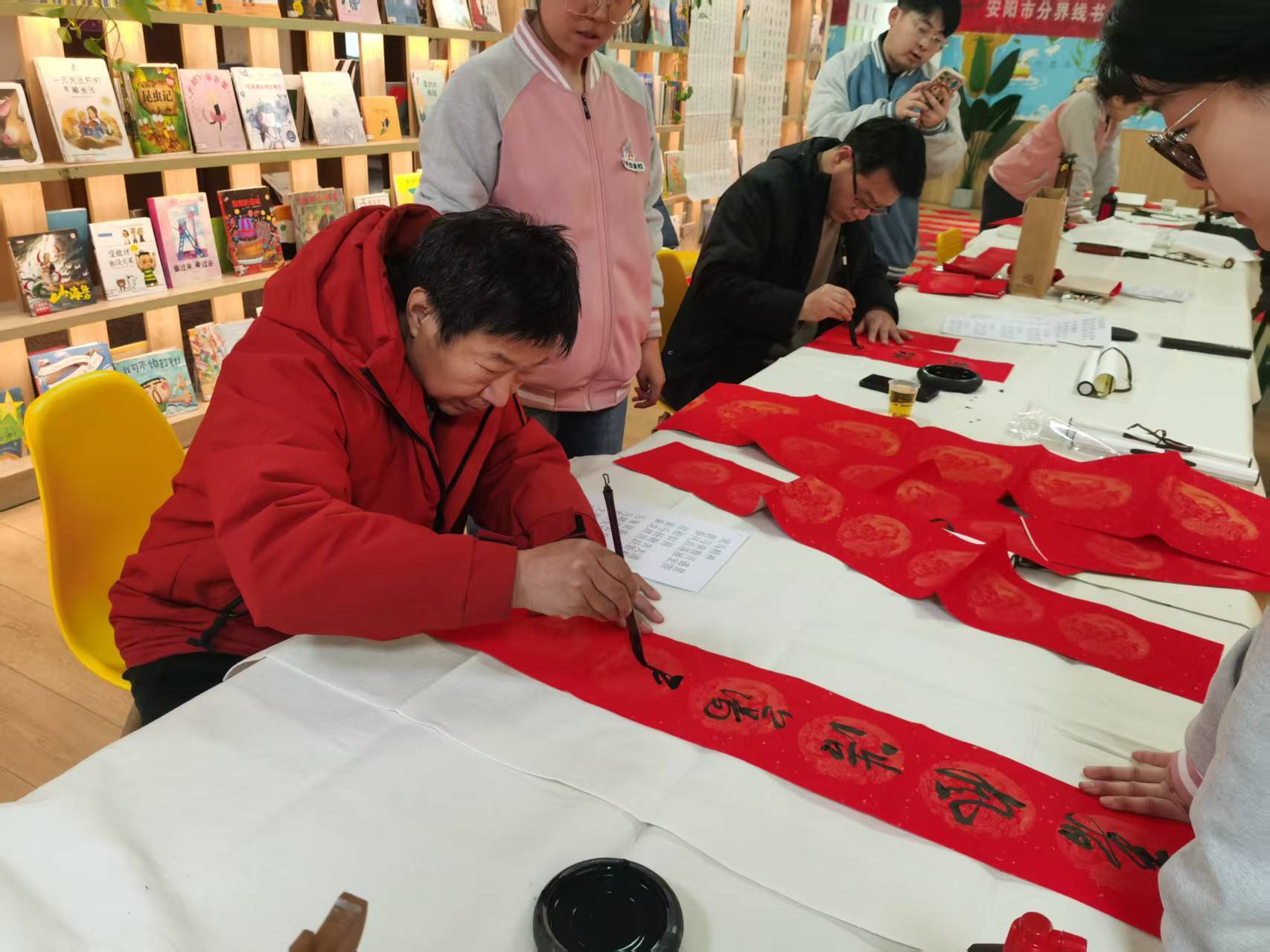 活動現(xiàn)場,墨香四溢、春意融融,書畫愛好者們凝神揮毫、各展所長,真草隸篆、花鳥山水各具韻味,大家將新春祝福凝于筆端,共書寫春聯(lián)300余幅、書畫作品50余幅。書畫愛好者們凝神靜氣,揮毫潑墨,各展所長。真草隸篆,或端莊大氣,或飄逸靈動;花鳥山水,或栩栩如生,或意境悠遠。每一幅作品都飽含著對新春的期盼、對盛世的贊頌,為該校師生和廣大群眾送上了一份濃郁的文化年味,使他們在筆墨間感受中華優(yōu)秀傳統(tǒng)文化的獨特魅力。不一會兒,一幅幅散發(fā)著墨香的春聯(lián)、一個個飽滿喜慶的“?!弊志弯仢M了地面,紅彤彤的一片,讓整個現(xiàn)場都洋溢著濃濃的年味。