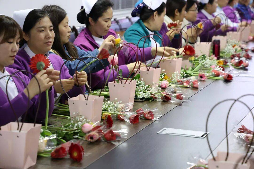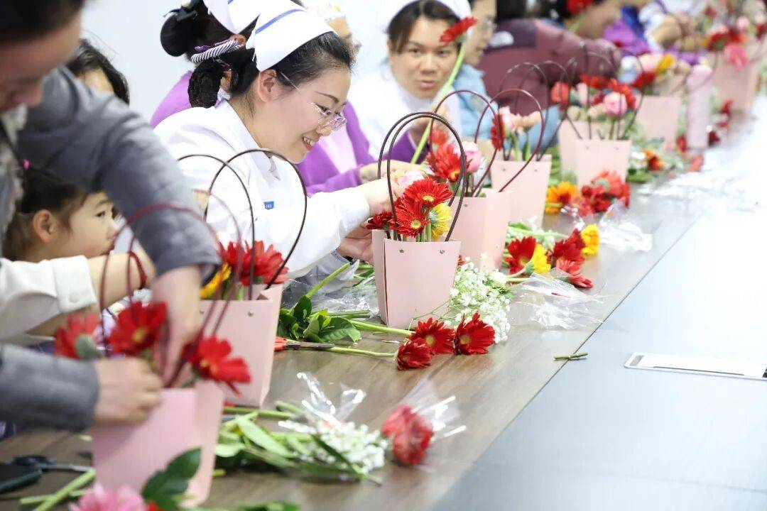 活動現(xiàn)場花香馥郁、暖意融融。專業(yè)花藝老師現(xiàn)場授課,細致講解插花技巧、色彩搭配與花語寓意,手把手進行示范教學。女職工們認真聆聽、踴躍嘗試,平日里堅守在醫(yī)療一線的“白衣天使”,化身心靈手巧的花藝創(chuàng)作者。