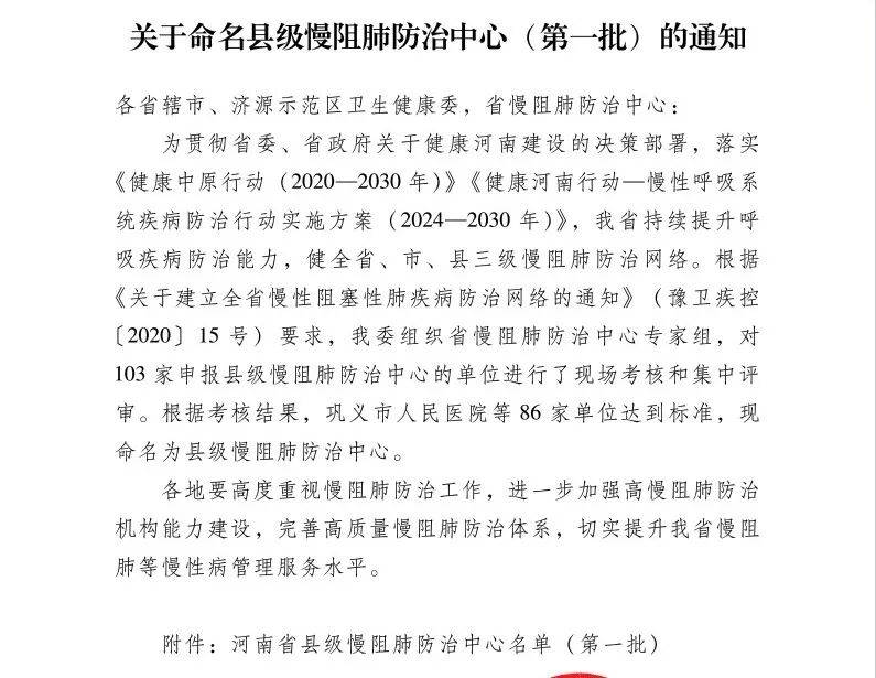 殷都區(qū)人民醫(yī)院成功獲評(píng)河南省第一批縣級(jí)慢阻肺防治中心