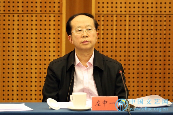 1月21日,中國文聯(lián)文藝工作者職業(yè)道德建設(shè)委員會在京召開“學(xué)習(xí)貫徹黨的十九大精神大力推進(jìn)行風(fēng)建設(shè)”座談會,向全國文藝工作者發(fā)出《新時代文藝工作者“講品位、講格調(diào)、講責(zé)任,抵制低俗、庸俗、媚俗”倡議書》。圖為中國文聯(lián)黨組成員、副主席左中一出席會議。中國文藝網(wǎng) 高晴 攝?