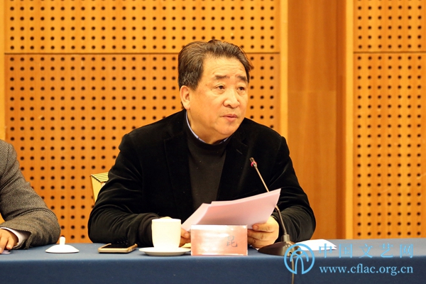 1月21日,中國文聯(lián)文藝工作者職業(yè)道德建設(shè)委員會在京召開“學(xué)習(xí)貫徹黨的十九大精神大力推進(jìn)行風(fēng)建設(shè)”座談會,向全國文藝工作者發(fā)出《新時代文藝工作者“講品位、講格調(diào)、講責(zé)任,抵制低俗、庸俗、媚俗”倡議書》。圖為中國文聯(lián)黨組書記、副主席李屹出席會議并講話。?中國文藝網(wǎng) 高晴 攝