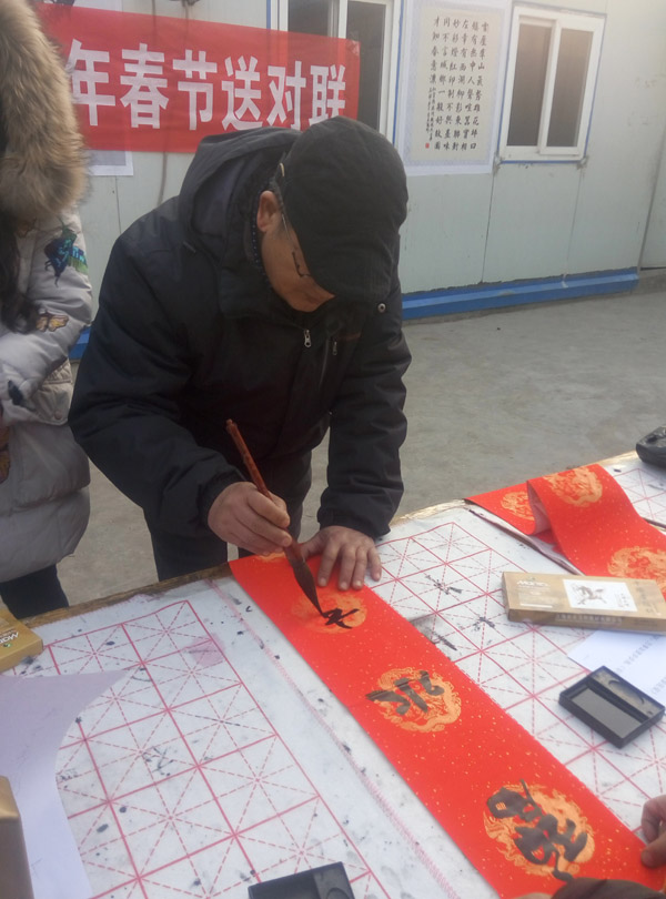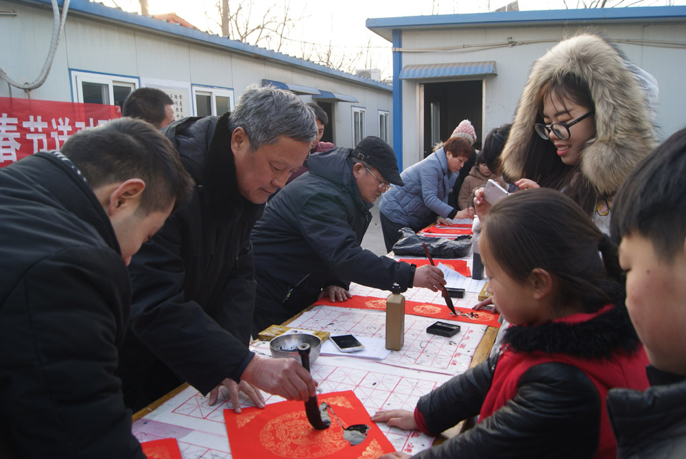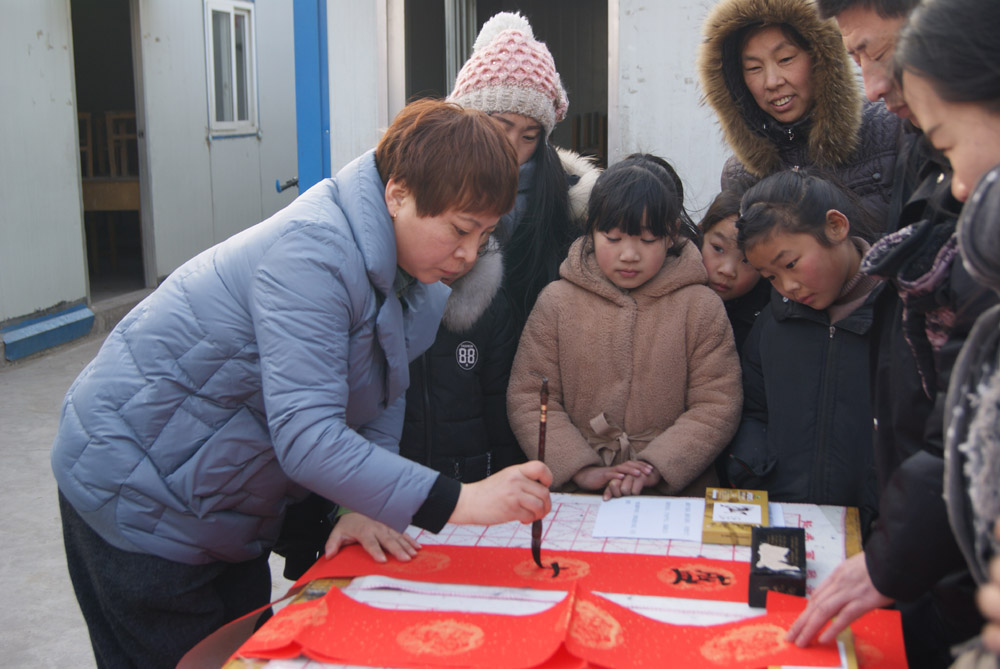 雖然天氣較冷,書畫家們還是揮毫潑墨,書寫春聯(lián)共迎傳統(tǒng)新年,受到家長及群眾的熱情歡迎,菁苗藝苑學員們一臉虔誠地觀看并主動為書法家們拉紙,現場書寫春聯(lián)200余幅贈送給附近居民和家長,書畫家和孩子們美好的祝福給寒冷的冬季帶來無限春意。