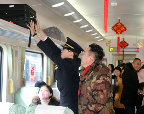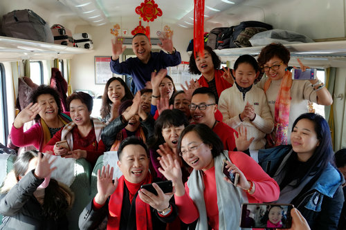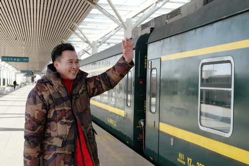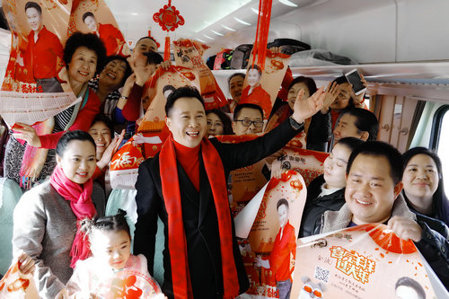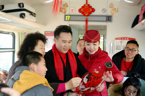 金波“快閃”紅旗列車與乘客齊唱《喜氣洋洋過大年》