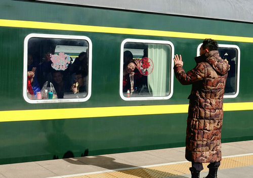 在接近兩小時(shí)車程中,17號(hào)車廂的旅客一直都活躍在喜氣洋洋年味中,大家都為這名軍旅歌唱家在過年之際帶來的歡樂表示難忘與興奮,很多乘客都認(rèn)為這是最值得回味的春節(jié)。就在包頭站下車后,很多旅客還隔著窗戶與金波招手依依不舍告別。