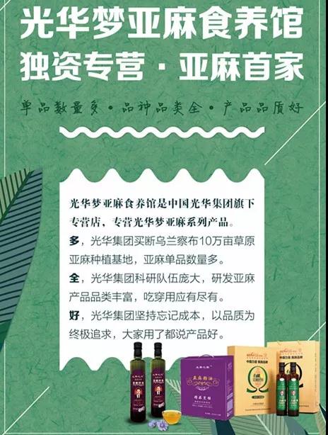 2018年中國光華集團(tuán)光華夢亞麻食養(yǎng)館橫空出世!全力開創(chuàng)亞麻產(chǎn)業(yè)鏈、打造中國第一品牌亞麻籽油。進(jìn)行中國食用油革命,宣傳少吃