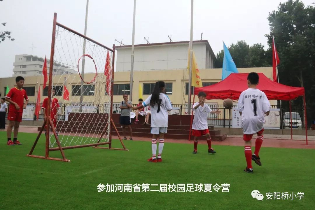 安陽(yáng)市安陽(yáng)橋小學(xué)是教育部命名的首批全國(guó)青少年校園足球特色學(xué)校。自命名以來,學(xué)校按照校園足球工作的十項(xiàng)標(biāo)準(zhǔn),扎實(shí)開展校園足球各項(xiàng)工作。每周一節(jié)足球課,每天進(jìn)行足球大課間,每年舉辦一屆“校長(zhǎng)杯”校園足球班級(jí)聯(lián)賽,每年組織一次校園足球文化藝術(shù)節(jié),組建學(xué)校足球梯隊(duì),建立校園足球工作室,成立家長(zhǎng)教練員、陪練員隊(duì)伍,與安陽(yáng)市足球協(xié)會(huì)簽約合作……家校攜手、師生共行,全面普及、逐步提高。