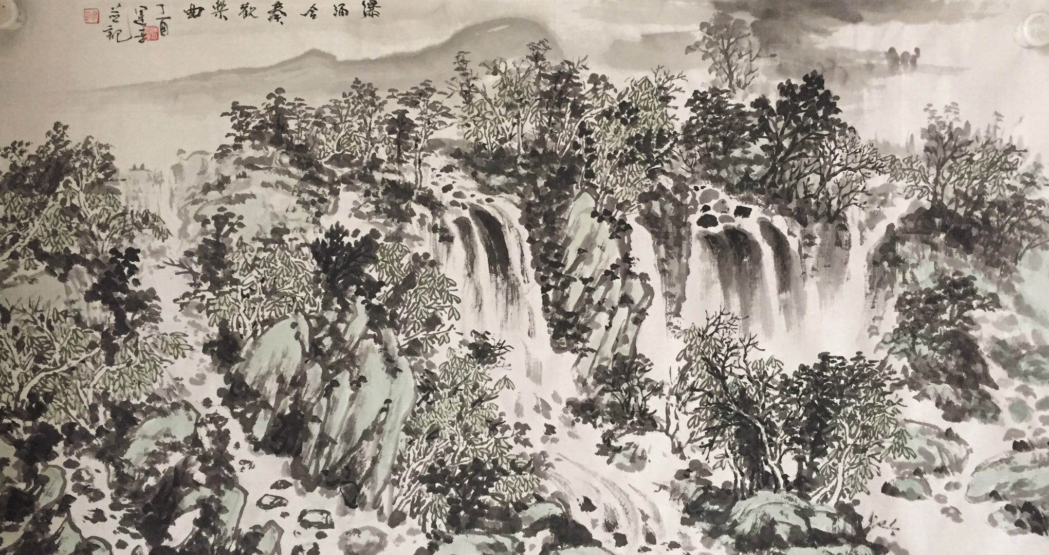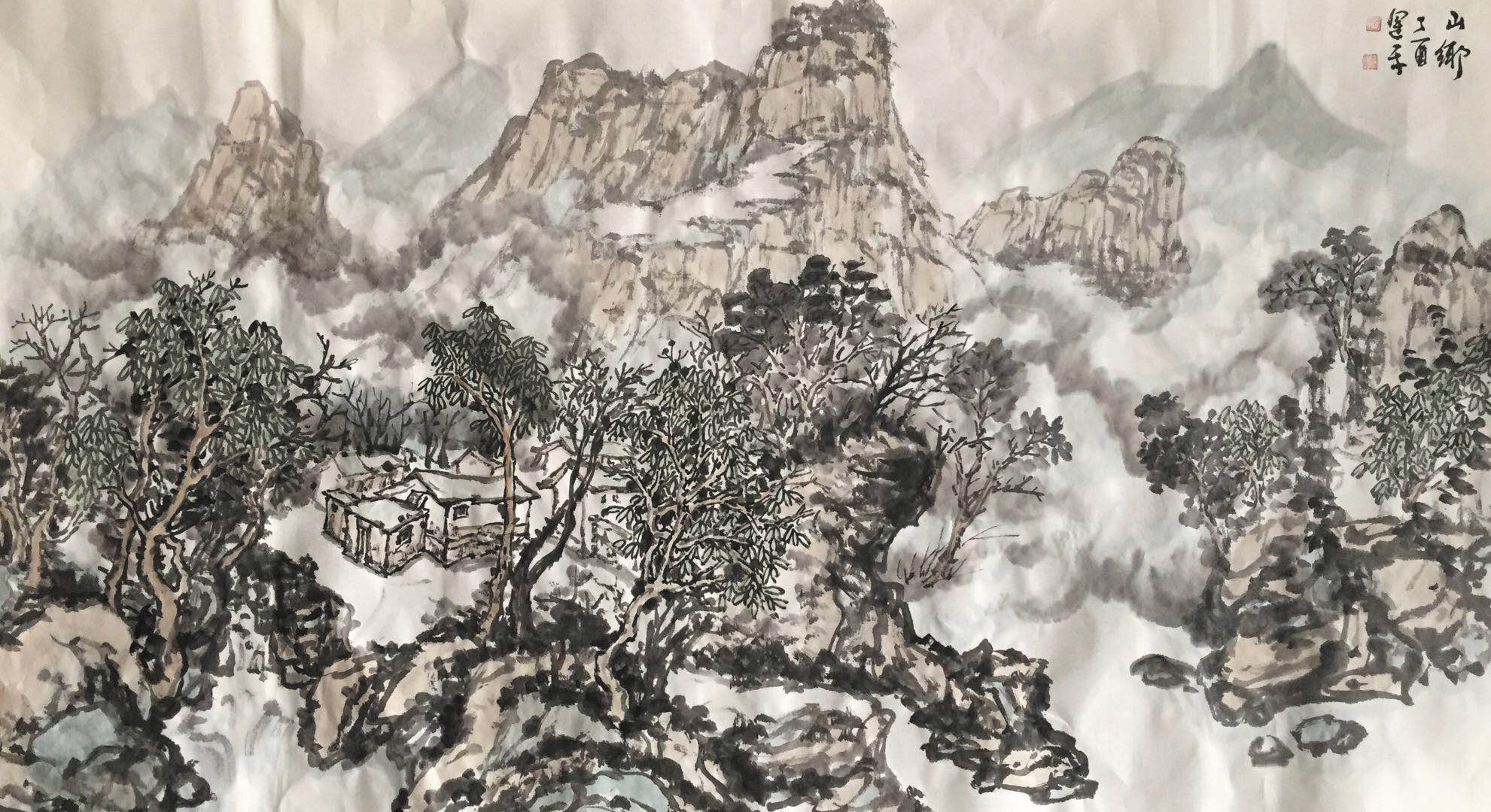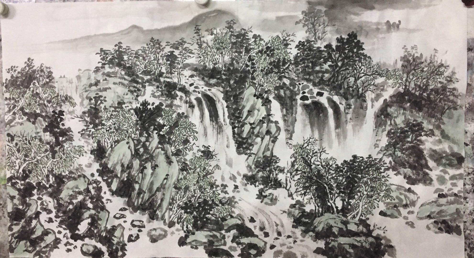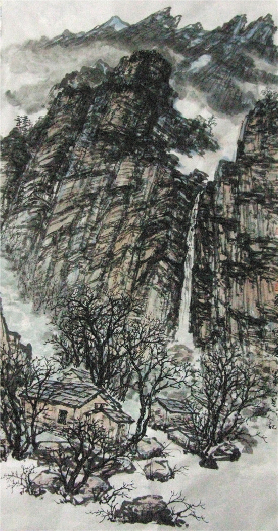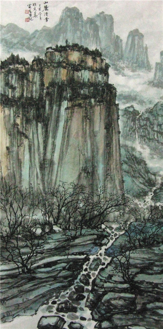 ??? 趙運平老師在創(chuàng)作中力圖把中國筆墨的抒情寫意,發(fā)揮墨的渾厚表現(xiàn)力,以使畫面大氣磅礴,雄強壯闊,并使筆墨活起來,讓畫面氣韻生動。在造景上,在具象的基礎(chǔ)上努力讓畫面更藝術(shù)使其抽象化,既表現(xiàn)出意境宏觀的強烈的生活感受,又讓畫面充滿積極向上的勃勃生機與活力,以達到極具象征意義的喻象。