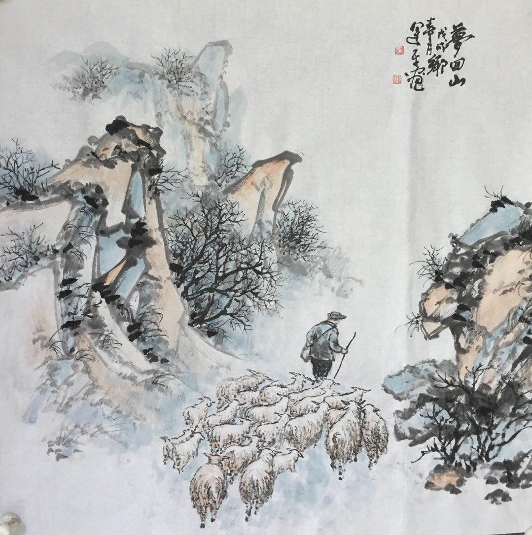 運平近幾年在全國中國美術(shù)家協(xié)會舉辦的展覽上屢次獲獎入選,這些作品內(nèi)容,都是取材于太行風情。運平是一位苦心孤詣,“困而知之”的求索者。從他的畫中,可以看出他踐行“深入生活,扎根人民”;在充滿甘苦和荊棘的創(chuàng)作道路上邁出的一步又一步堅實的腳印。用他自己的話說:“下的是笨功夫,投入的是全身心;如牛拉犁,極苦極累?!闭怯捎谒倪@種牛的精神,一步一個腳印扎扎實實的耕耘在丹青的田園之中,才有今天的成就,才使他的作品始終,保持旺盛的精神活力!
