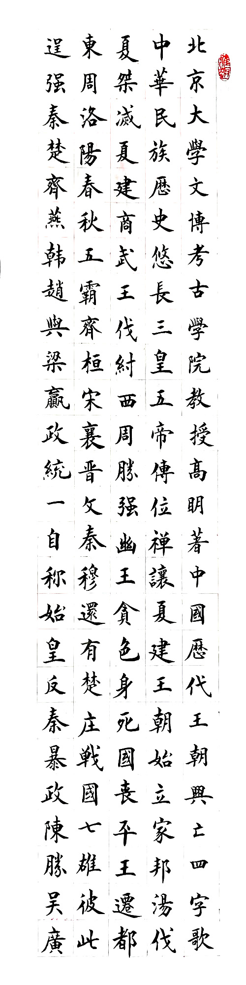 ??? 他從唐楷切入,在點、劃基礎(chǔ)上下足了功夫,博覽眾長,尤對歐楷感悟至深,為自己的創(chuàng)作奠定了扎實的基本功。觀其作品,有感于他用筆精到、干凈利索、如錐畫沙、抽刀斷水,多骨豐筋、如印印泥、力透紙背,其結(jié)字俊險如歐、汲古不泥。