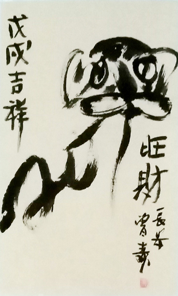??? 特別是看黃國良先生創(chuàng)作數(shù)字生肖,在一扭一轉(zhuǎn),一提一按間,似是而非的生肖便躍然紙上,字中有畫,畫中有意,意中有魂,真正做到了“胸中有竹而非竹”。