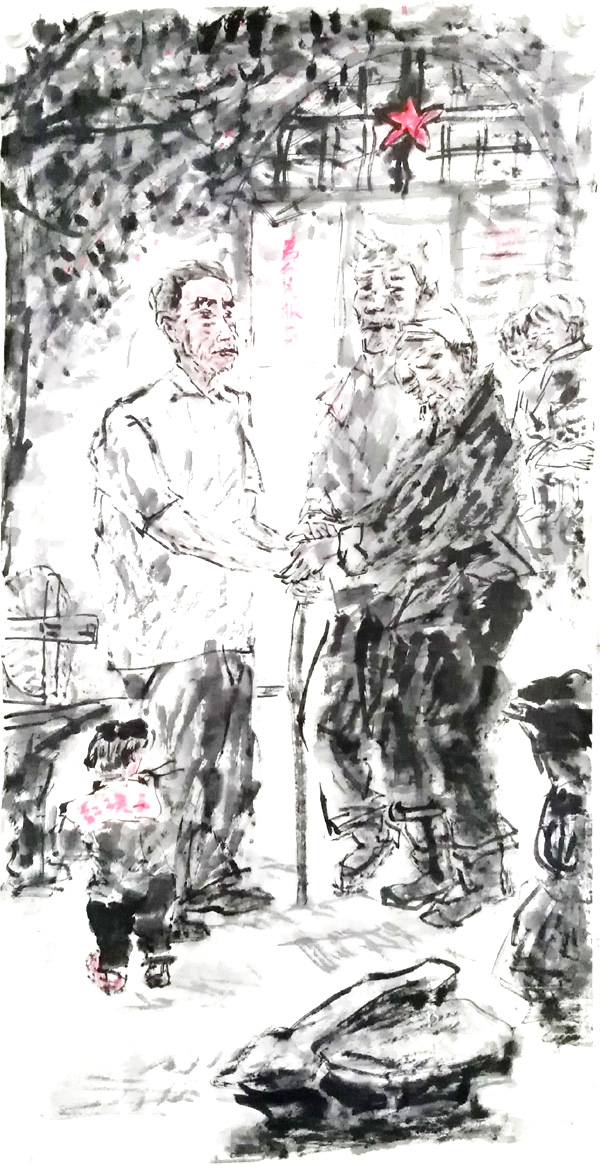 ??? 看黃國良先生作畫是一種享受??粗市噪S意的揮灑筆墨,枯濕濃淡,提按頓挫,不經(jīng)意間,觀者就會被帶入了他的筆墨中,他的意味中,拿捏精準(zhǔn)的神情往往引得觀者會心一笑或深沉的思索。這也恰如江湖高手過招無招勝有招,在看似雜亂的手忙腳亂中卻早已攝人心魂,讓人嘆為觀止。